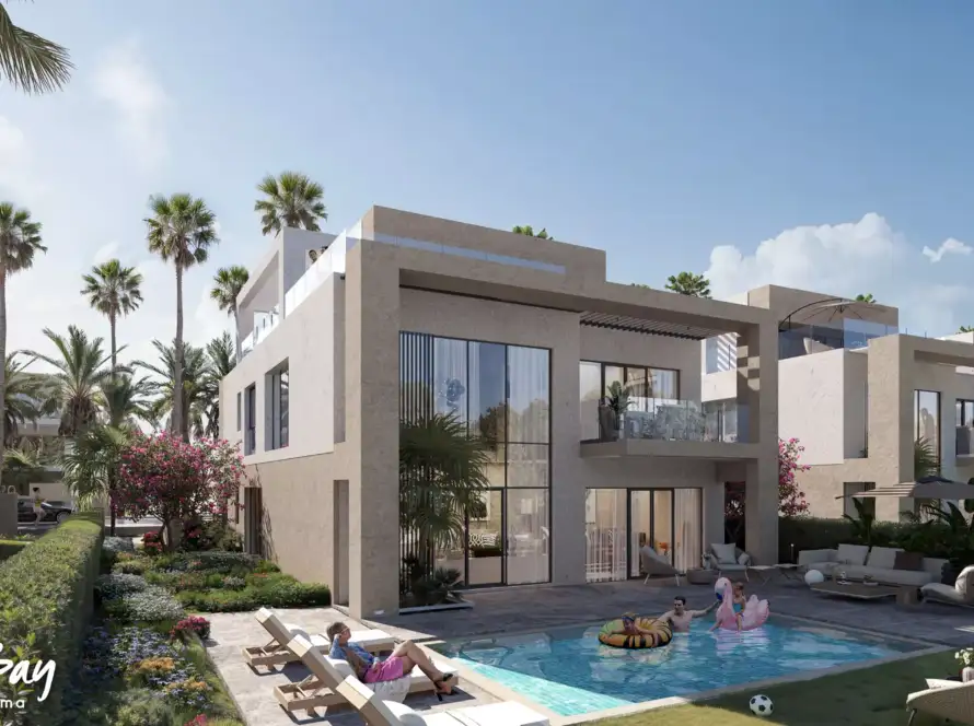 The "Mar Bay" project is located in the Ras El Hekma area on the North Coast and is being developed by Al Marasem Real Estate Development Company. The project boasts a strategic location and sea views, and includes a variety of residential units, including chalets and villas, in addition to an internationally managed hotel. The design combines modernity and elegance, with attention to green spaces and distinctive sea views.